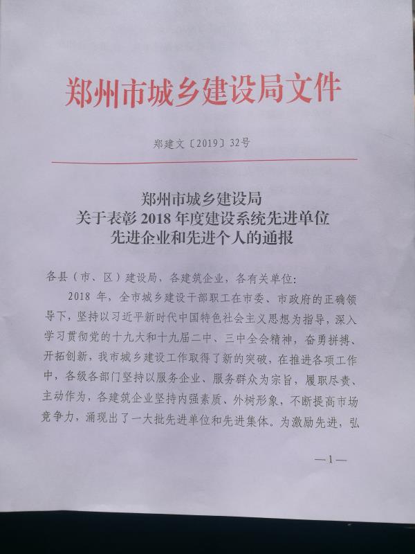 一、2018年度鄭州市建筑業(yè)管理先進(jìn)單位、先進(jìn)企業(yè)和先進(jìn)個人