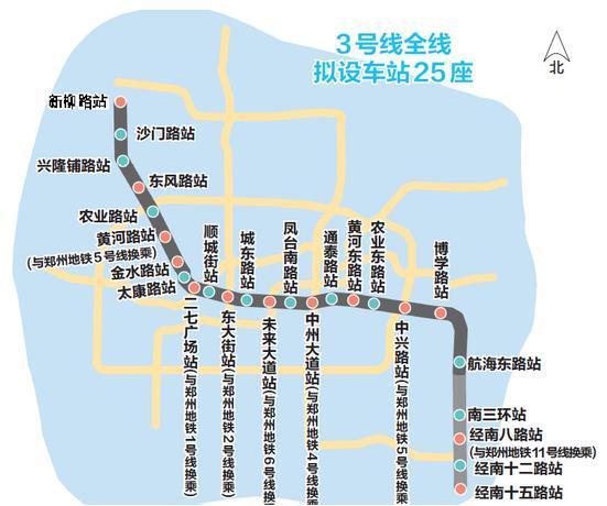 鄭州地鐵3號(hào)線是鄭州中心城區(qū)一條由西北至東南的斜向徑向軌道交通骨干線路,起始于古滎站,終點(diǎn)至經(jīng)南十五路站,全線共設(shè)31座車站,線路全長41.0公里,站間距為1.4km,采用6A編組列車,功能定位為鄭州中心城骨干線。