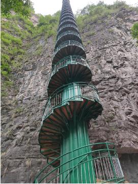 王相巖被譽為太行之魂,實至名歸,在上山的那一刻起挑戰(zhàn)就開始了,連續(xù)的陡峭階梯過后,緊接著就是一段依附于絕壁之上,高60米,共186級臺階的絕壁棧道,沿著棧道從絕壁下盤旋而上,下連山嶺上接云天,棧道還十分狹窄,只能容一人通過,只要踏上棧道,就要一往無前,不能回頭,大家互相鼓勵,互相幫扶,全部通過了這段絕壁棧道,無一人畏懼后退。
