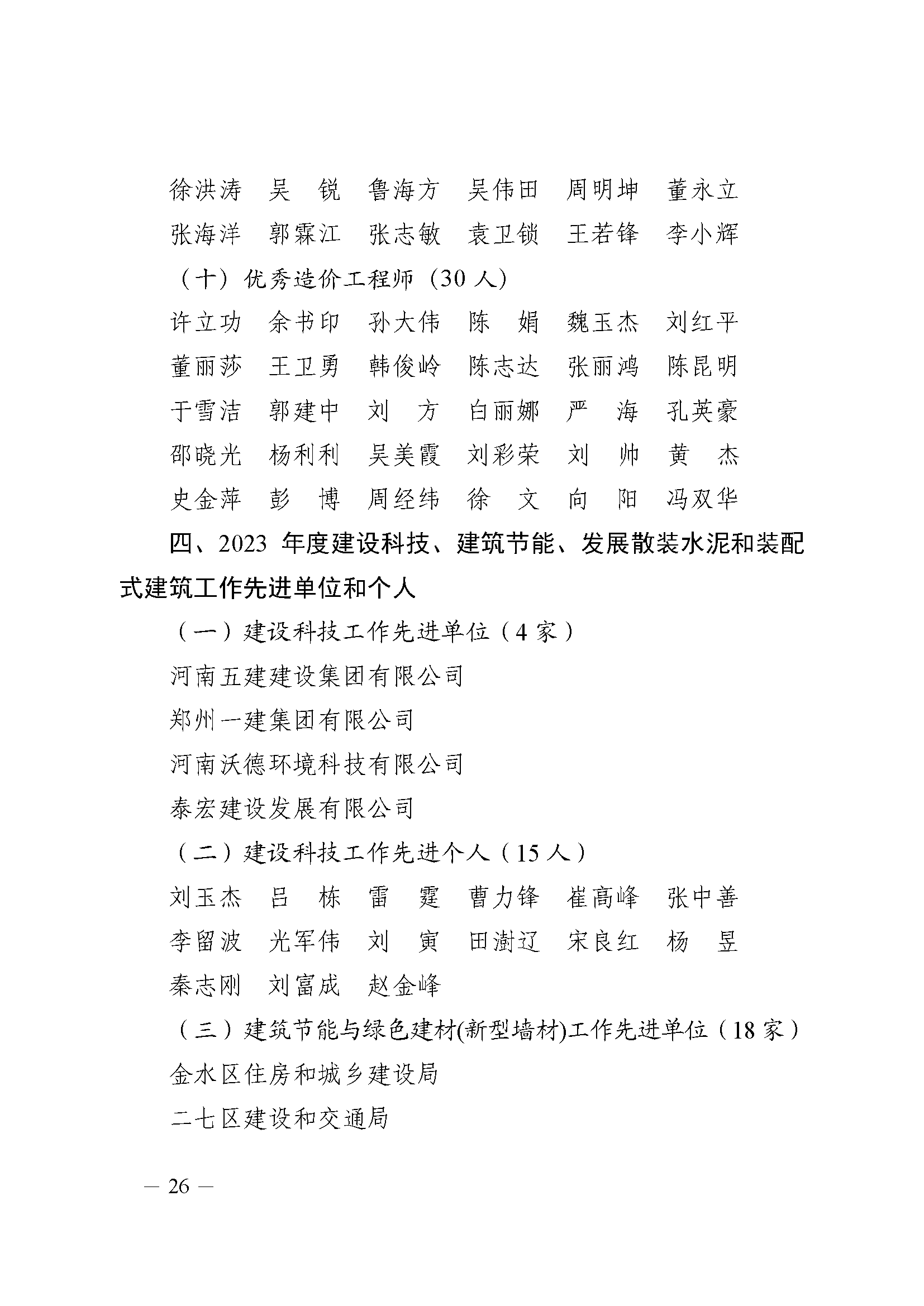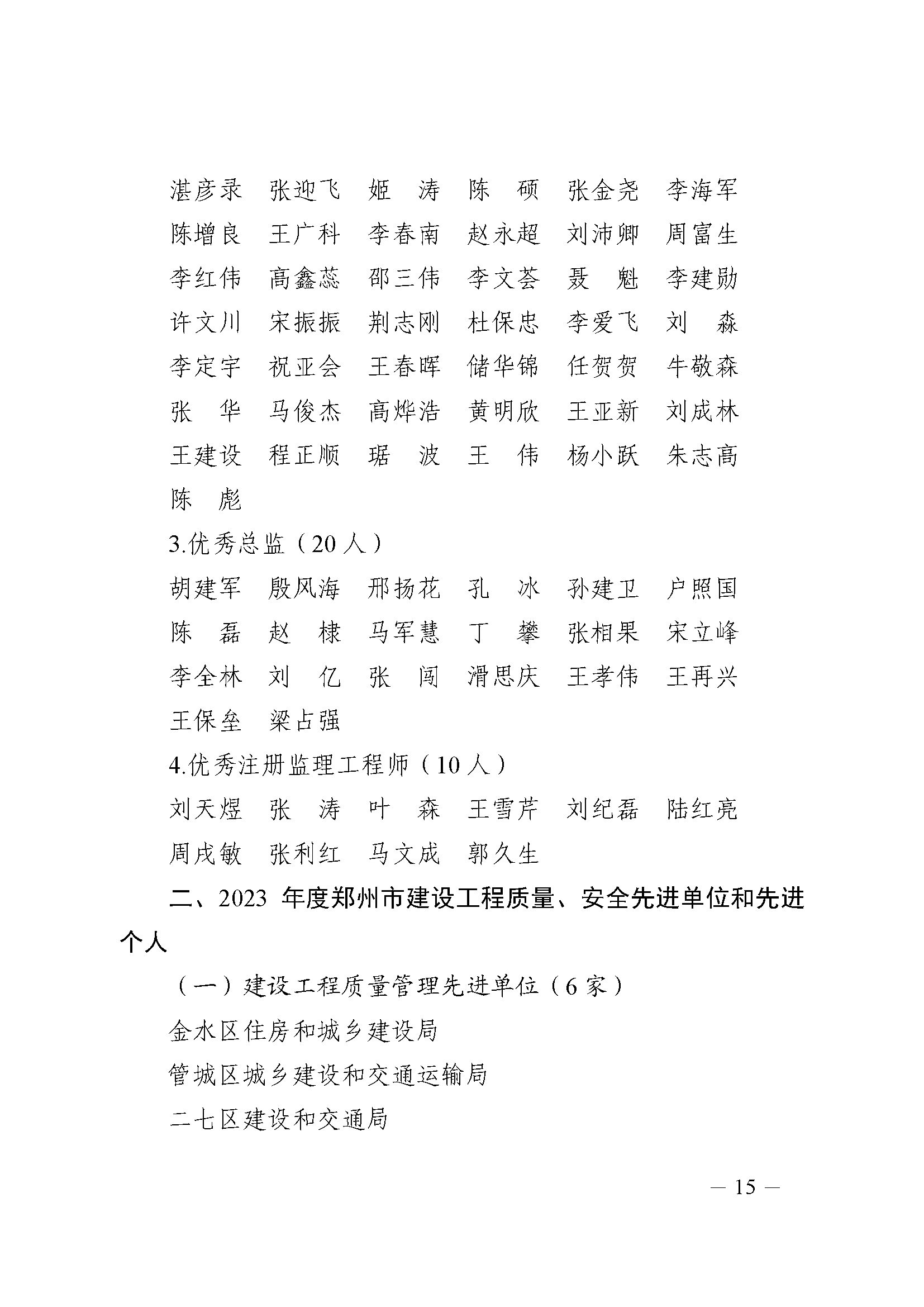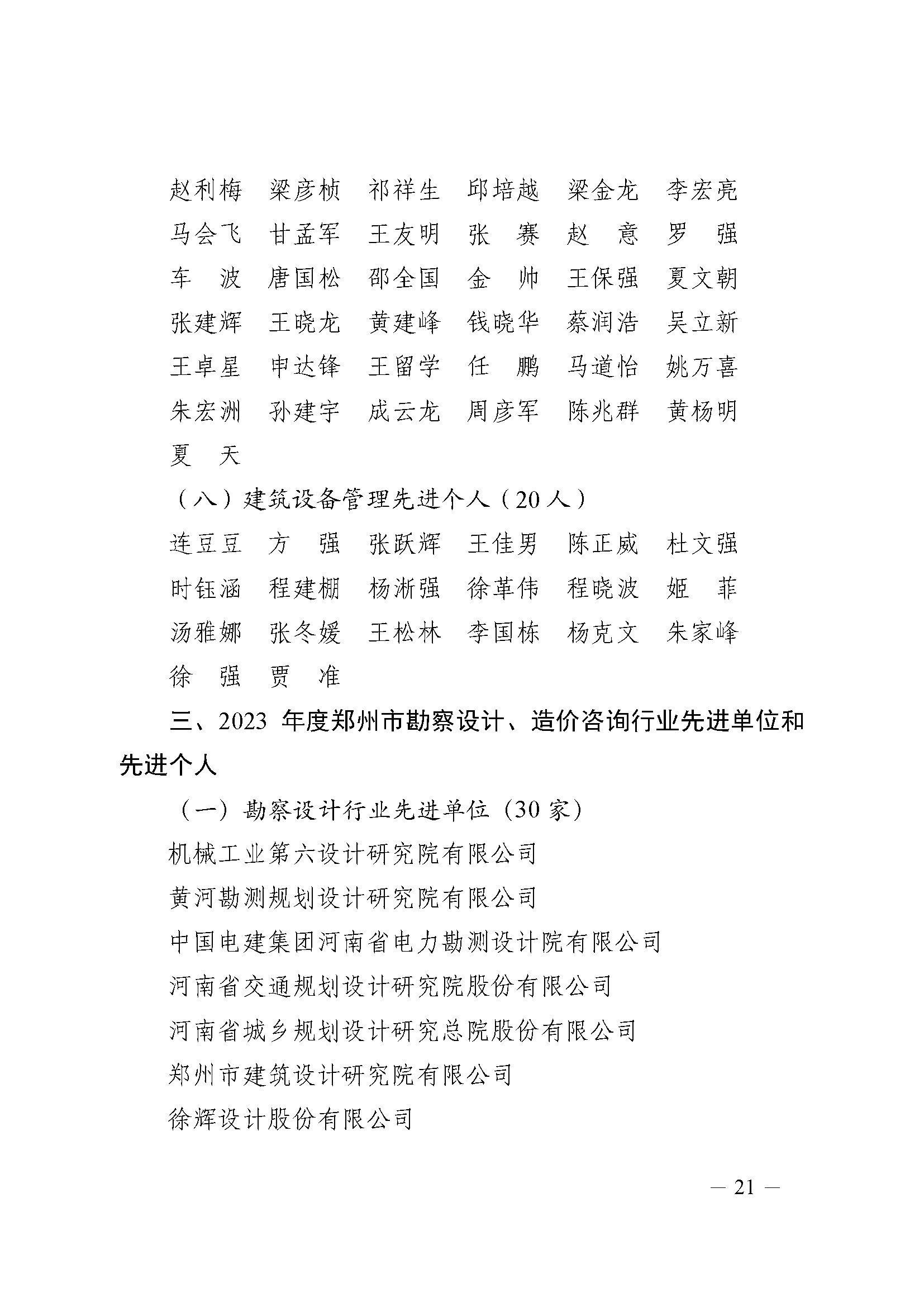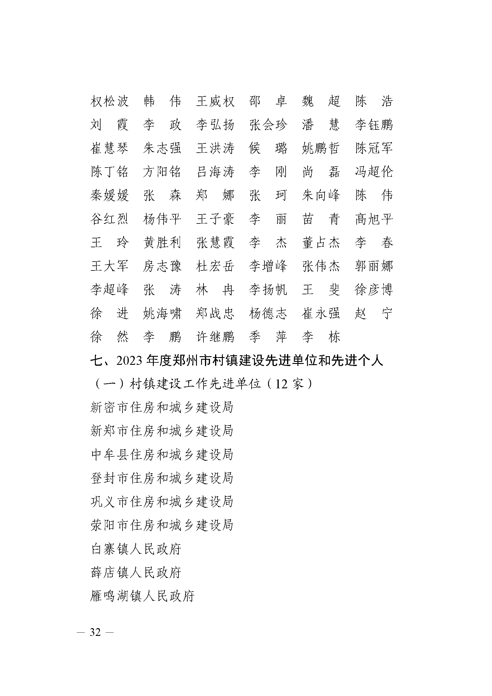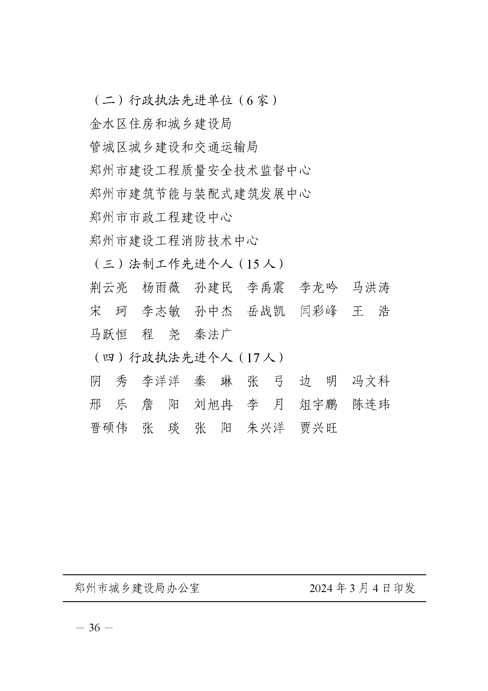 鄭州市城鄉(xiāng)建設(shè)局關(guān)于表揚2023年度建設(shè)系統(tǒng)先進單位先進企業(yè)和先進個人名單的通報